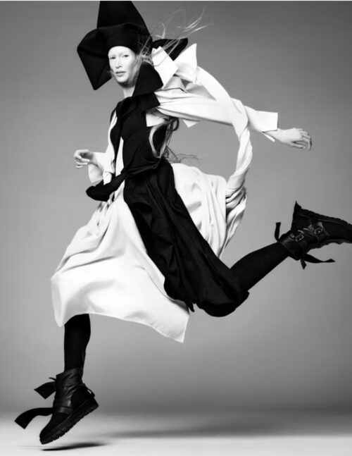 Produced by PRODn; producers: Steven Dam, Stephanie Ge, Wesley Torrance, Mitch Baker; Steven Meisel Studio manager: Ruk Richards; Steven Meisel Studio art director: Paulie Browne; photo assistants: Jeremy Hall, John Griffith, Alex Hopkins, Jeremy Gould, Alex Johnstone; digital technician: Kevin Lavallade; retouching: DTouch; fashion assistants: Caroline Hampton, Brandon Williams, Adrian Reyna, Michaela Snavely; production assistants: Lindsey Gomez, Daniel Weiner, Jackie Swanson, Austen Juul-Hansen, Noah Conboy, Aaron Pimentel; manicure assistant: Armani Je’ton Nolcox; tailor: Raul Zevallos at R-Zee Tailoring.