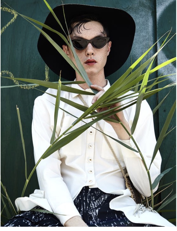 A wool felt hat trimmed with leather cord by me. Photographer: Diane Zhao Fashion Stylist: Davis Carrasquillo Model: Emile/ ONE Grooming: Brittan White